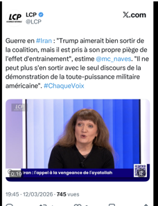 J’étais sur le plateau de « Chaque voix compte », sur LCP, le 12 mars 2026, pour parler de l’engagement américain dans la guerre au Moyen-Orient.